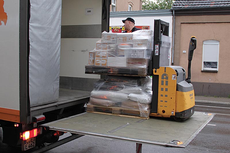 Alle unsere Thermo-Auflieger (Schmitz Cargobull, ATP/FRC) verfügen über feste Platohebebühnen und sind mit Doppelstockameisen und Handhubwagen ausgerüstet. Dies ermöglicht die direkte Belieferung und ein schnelles, sicheres und kosteneffizientes Be- und Entladen von Gütern zu jeder Zeit an nahezu jedem Ort. Wir benötigen keine Stapler vor Ort – das regeln wir nach Kundenwunsch.